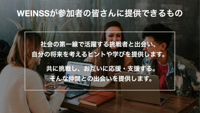 そのために、WEINが挑戦への第一歩として現在企画しているのが、国内最大規模のオンライン学生カンファレンス WEIN Students Summit なのです。