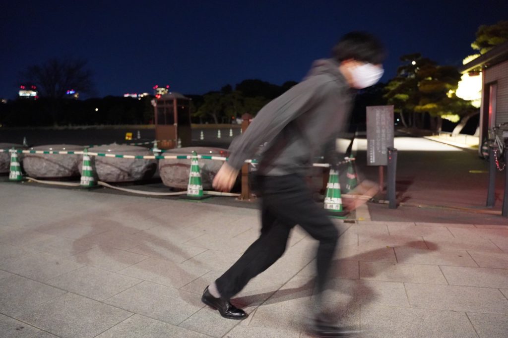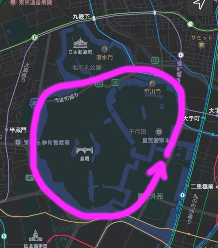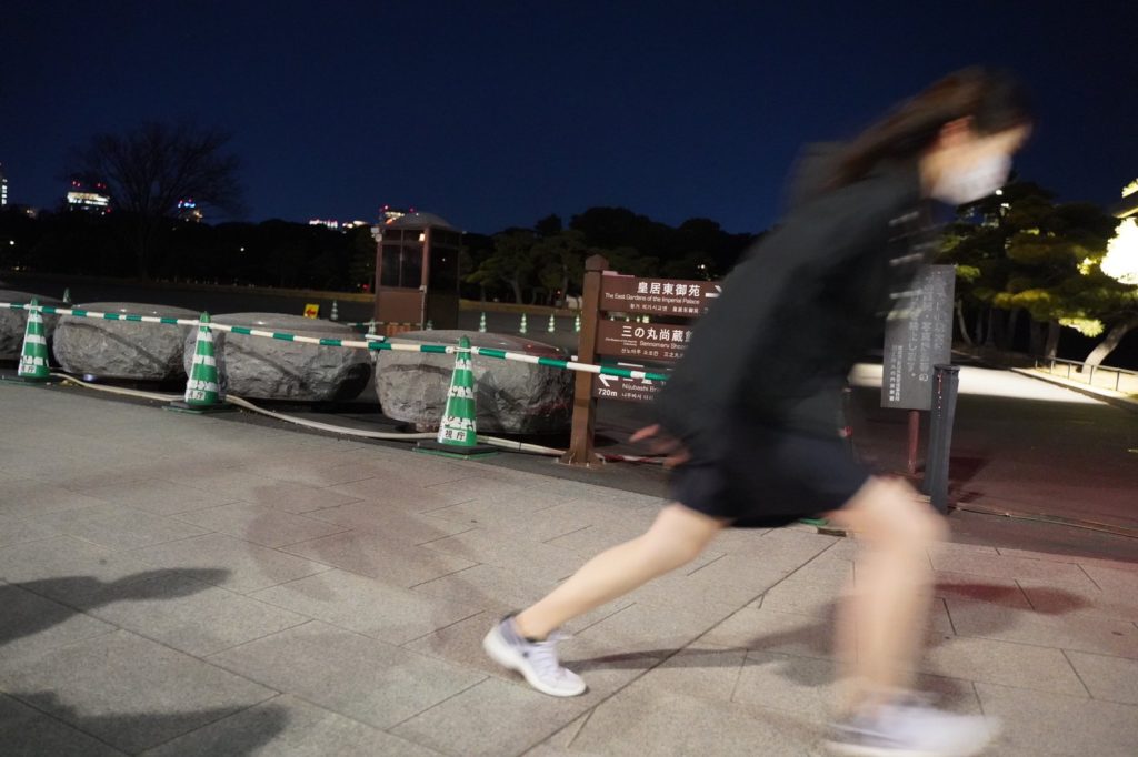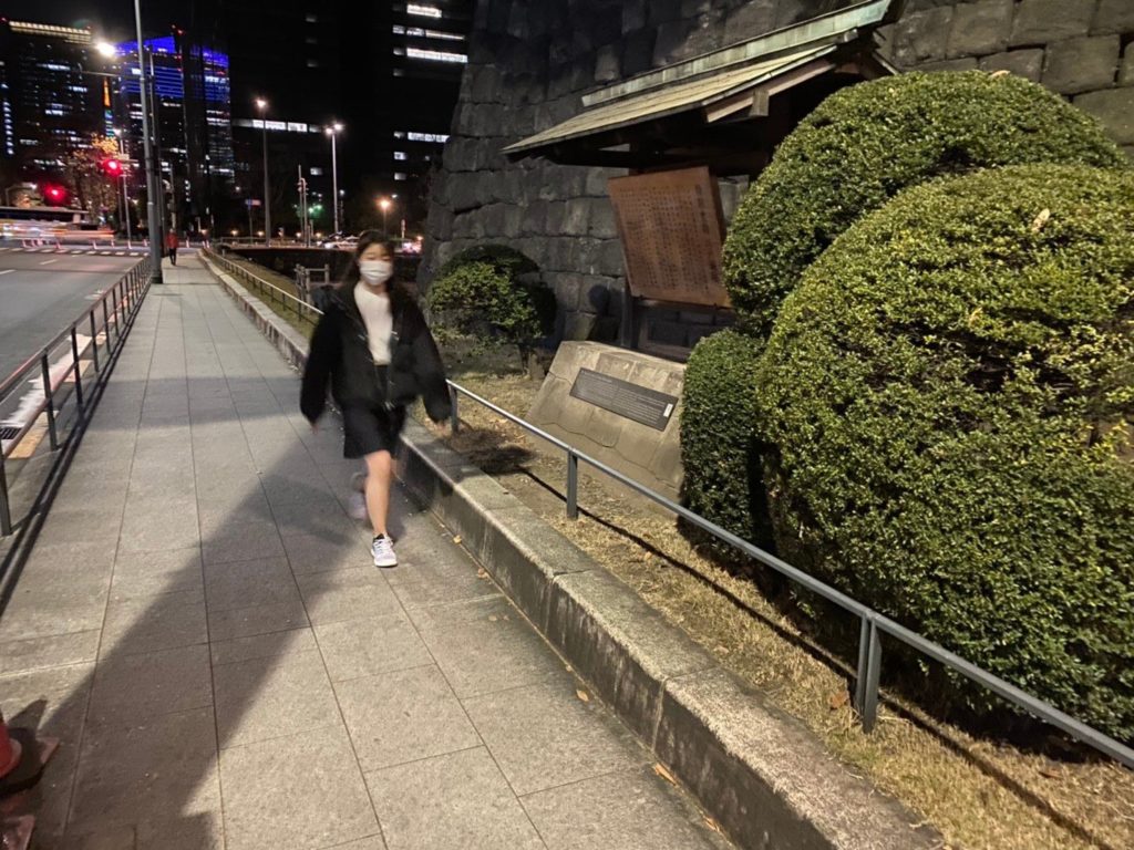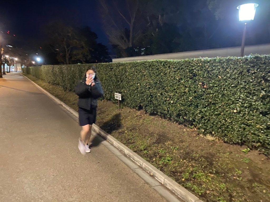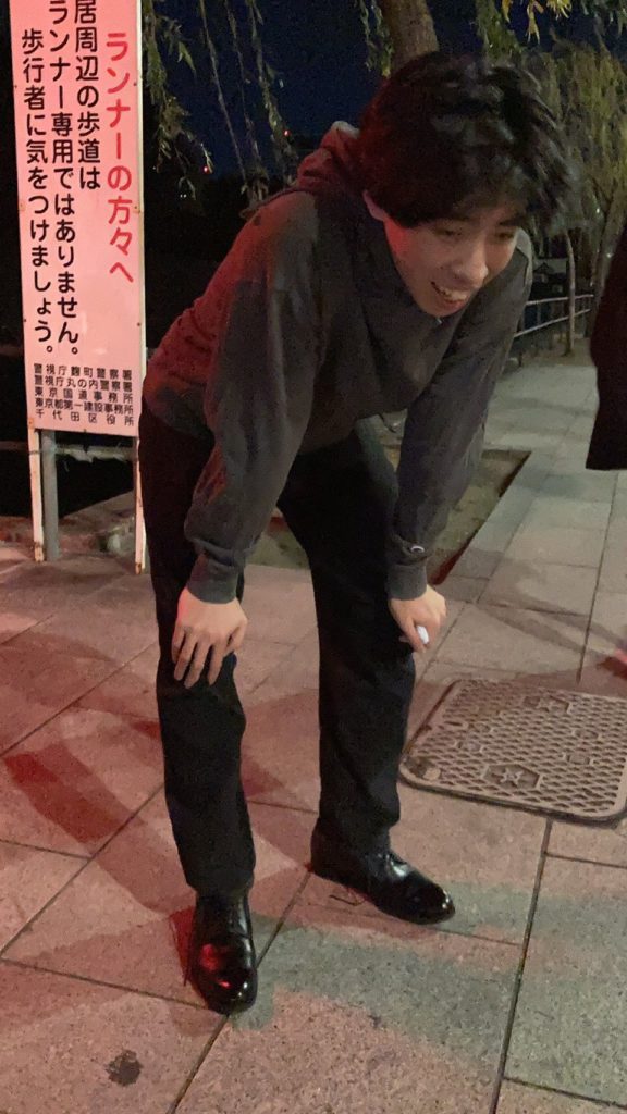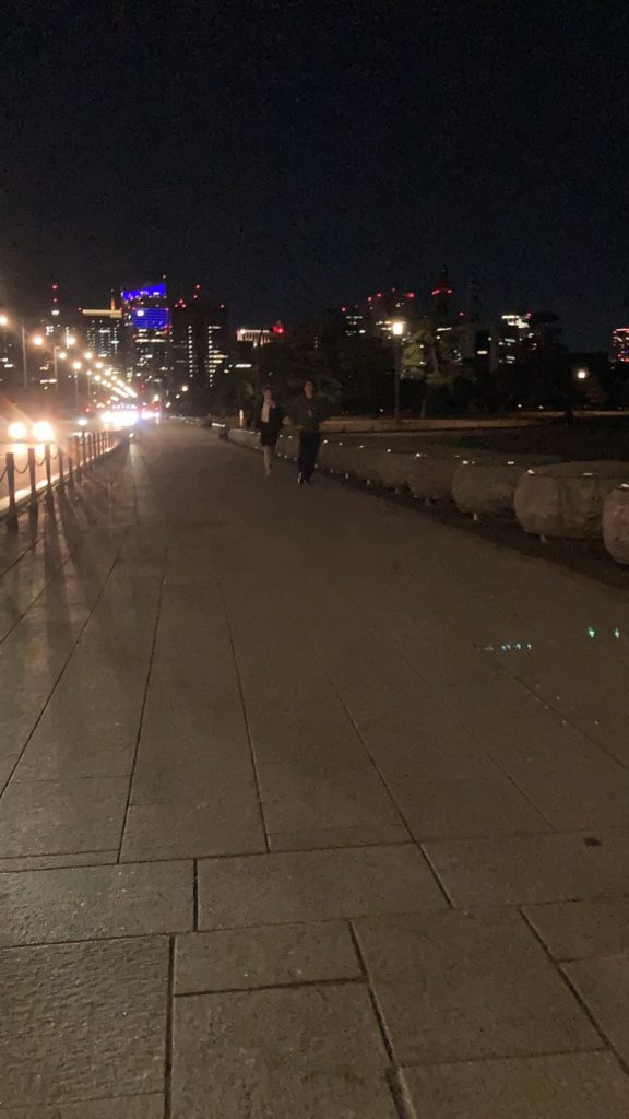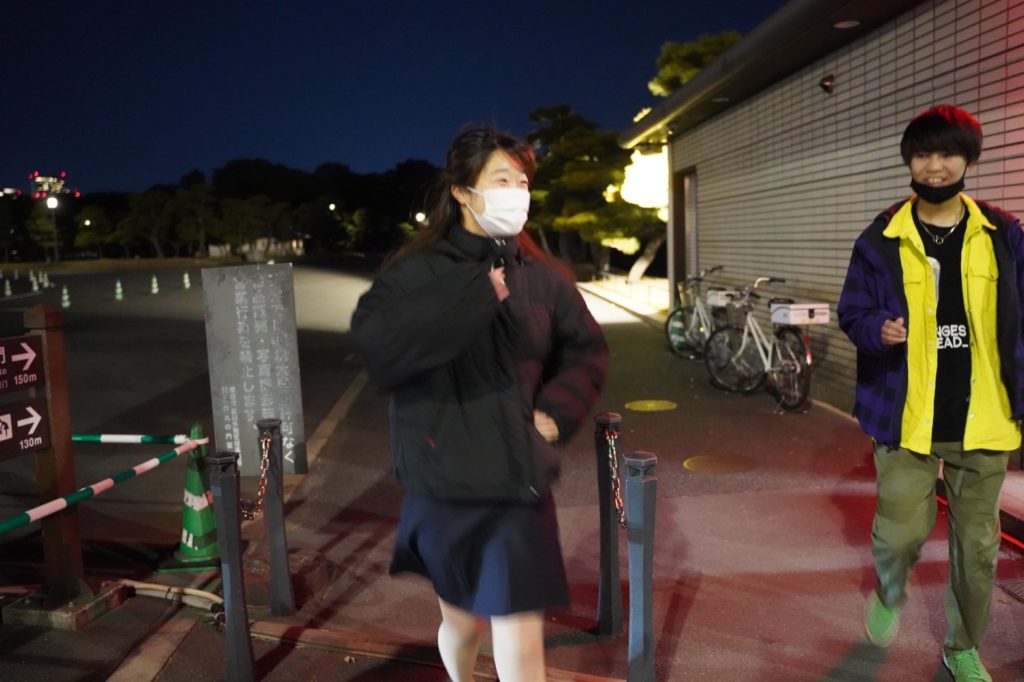 会場に移動しました。今回の会場は皇居1周です。編集長によれば5kmくらいとのこと。5kmを走るなら19歳の老体には厳しいものがあるけど、歩くだけならいけるのでは??