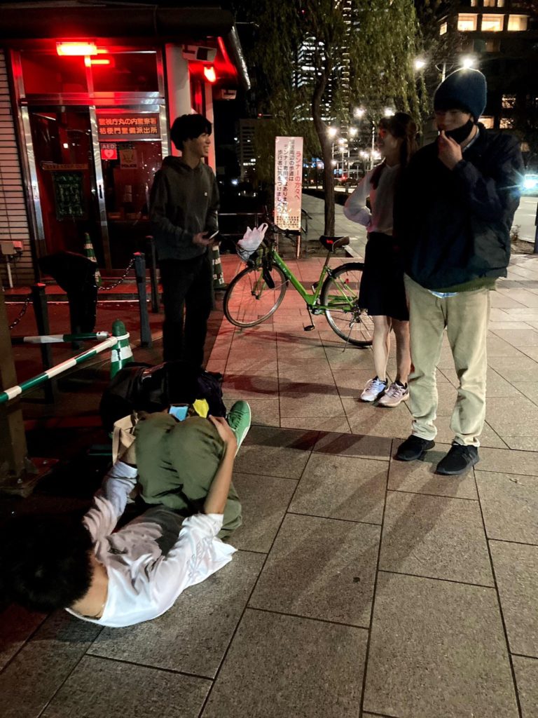 れおんには「バイト後に競歩大会に来てもらう」ということだけは事前に伝えていたので、彼は着替えを持ってきましたが、肝心の靴を忘れたので革靴で歩くようです。頑張れ。
