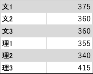 目標を高くすると、実力のゴールが変わります。そうやって実力を上げる過程で、低い目標を超えてしまう事はよくあります。このような理由で、前年度の平均点を1つの目安にすることをオススメします。2021年度の入試だと、2020年の平均点数から次のようになるでしょう。