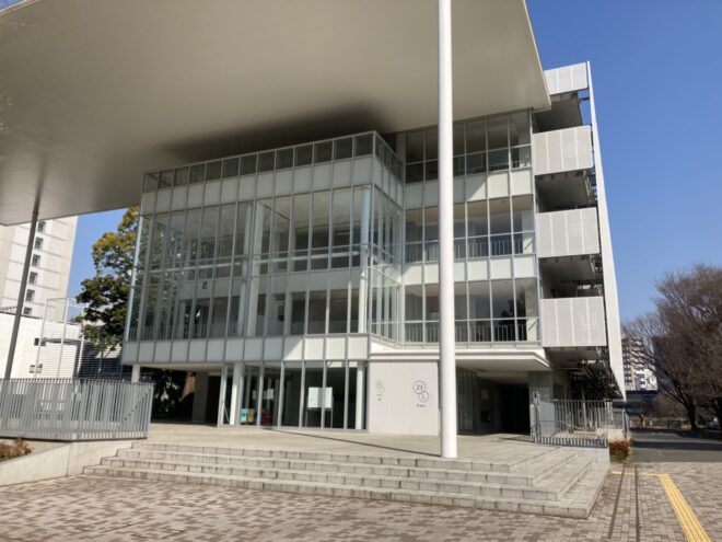 銀杏並木を突っ切った先、唐突に見えてくる現代的なガラス張りの建物群の一つがこの「21 KOMCEE East」です。2011年竣工のこの校舎を前にした受験生は、直ちに自分が”当たり”であることを確信するでしょう。実はここ、2020年度入試で初めて会場として使用された校舎であり、筆者自身が受験した会場でもあります。
