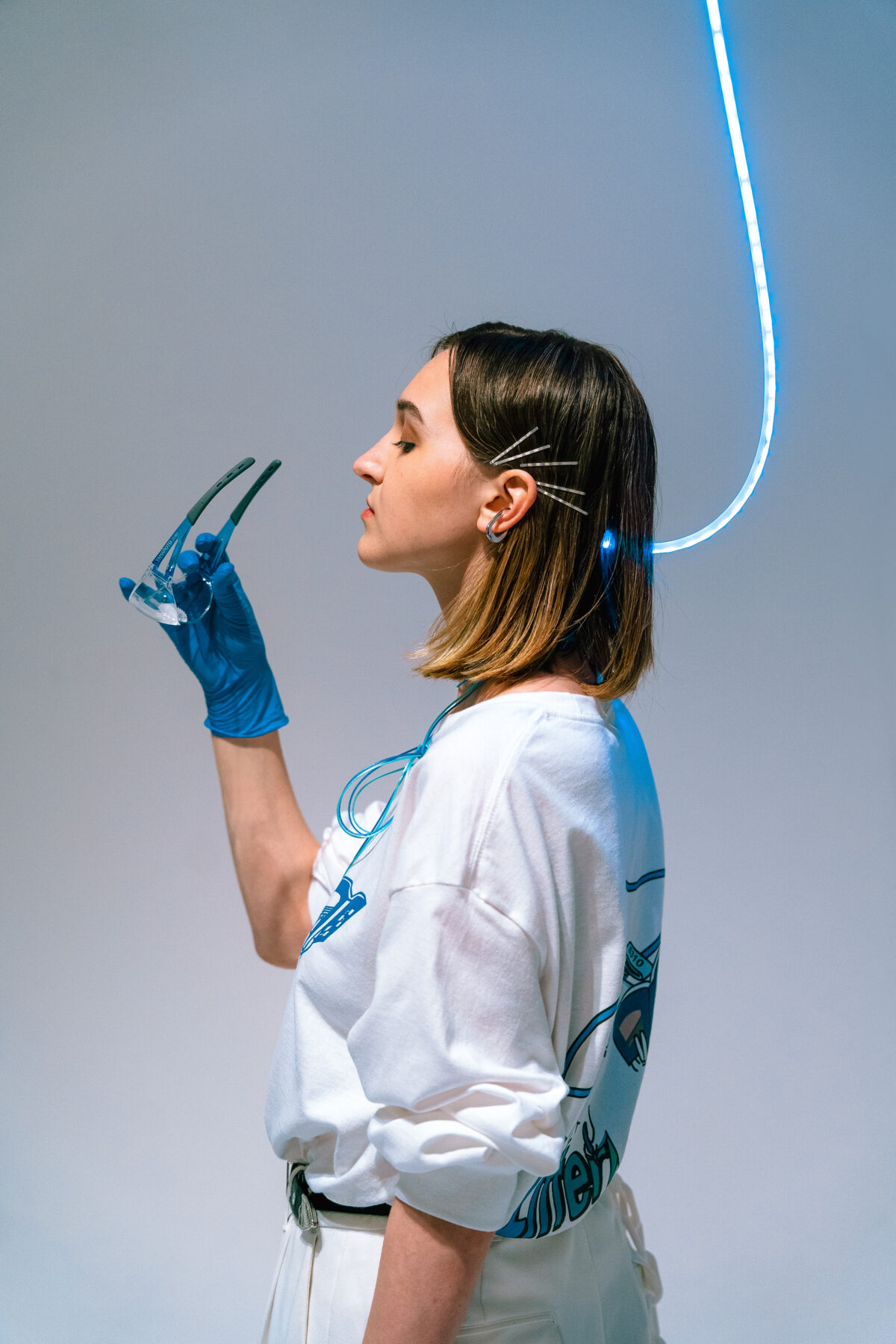 そうなんです。今回の撮影では今作のテーマをそのまま表現するために、モデルさん達の頭にも光のチューブをつけて撮影しました!