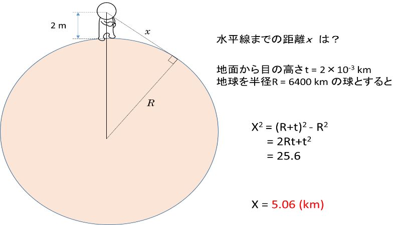 単に水平線までの距離を求めるだけなので、実は難しくないですね。
