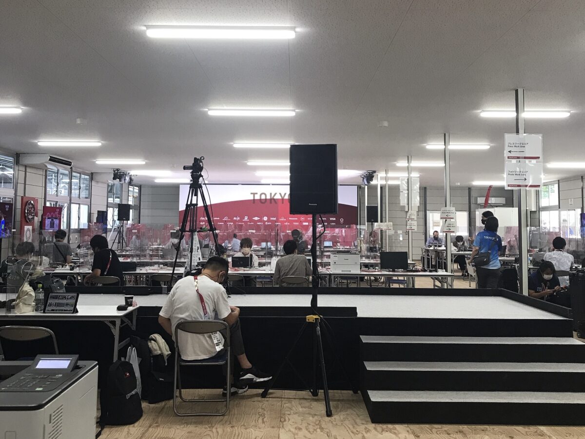 メディアの裏側なんて普段見ることができませんが、今回はたっぷり拝見することができました。すごく陽気なカメラマンさんもいて、面白かったです。試合が終わった後は直でこの上記の待機室に来て、写真を熱心に選んで送っていました。オリンピック専用のタクシーの電話がつながらないらしく(闇)、受け付けはタクシーの話でもちきりでした。