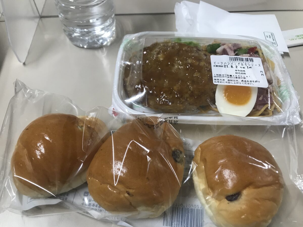 次に食事についてです。初日に初めて食べた時の衝撃はいまだに忘れられません。飯が出るだけ光栄だと思わなければならないのですが、やはり濃い。おかずは共通で、冷蔵庫から直で食べます。また主食はパンかおにぎりの2択でした。