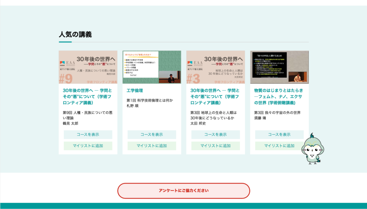 先生自身がこれらのサイトを学生に紹介するのはもちろんのこと、授業に講義動画を活用することもできると思います。