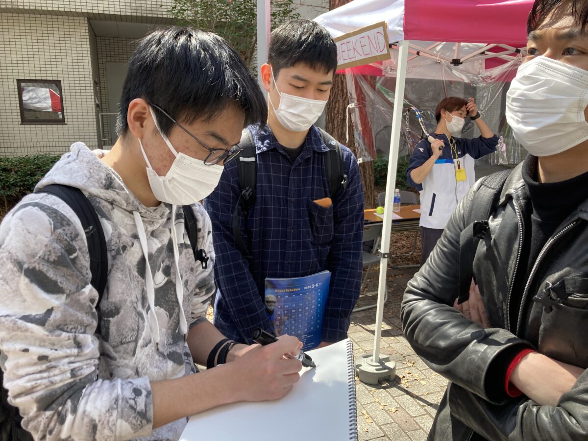 「うちのサークルの宣伝にもなるし」と言いながらサークル名を書いてくれました。