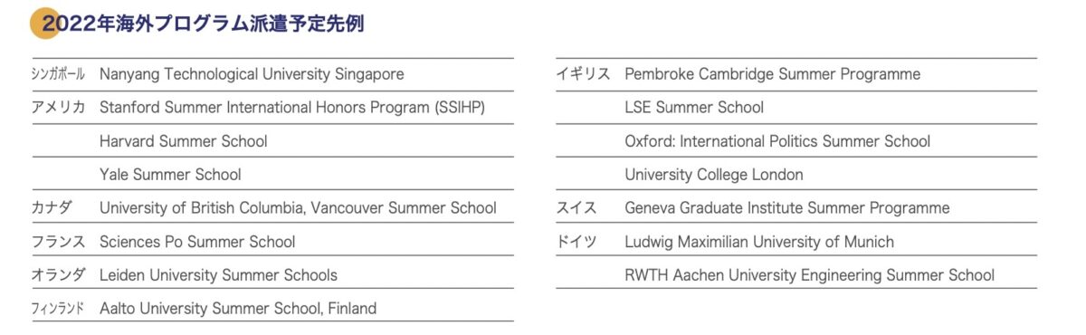 気軽に海外プログラムに行ける点はとても魅力的ですね!ちなみに開催される海外プログラムは何個くらいありますか?