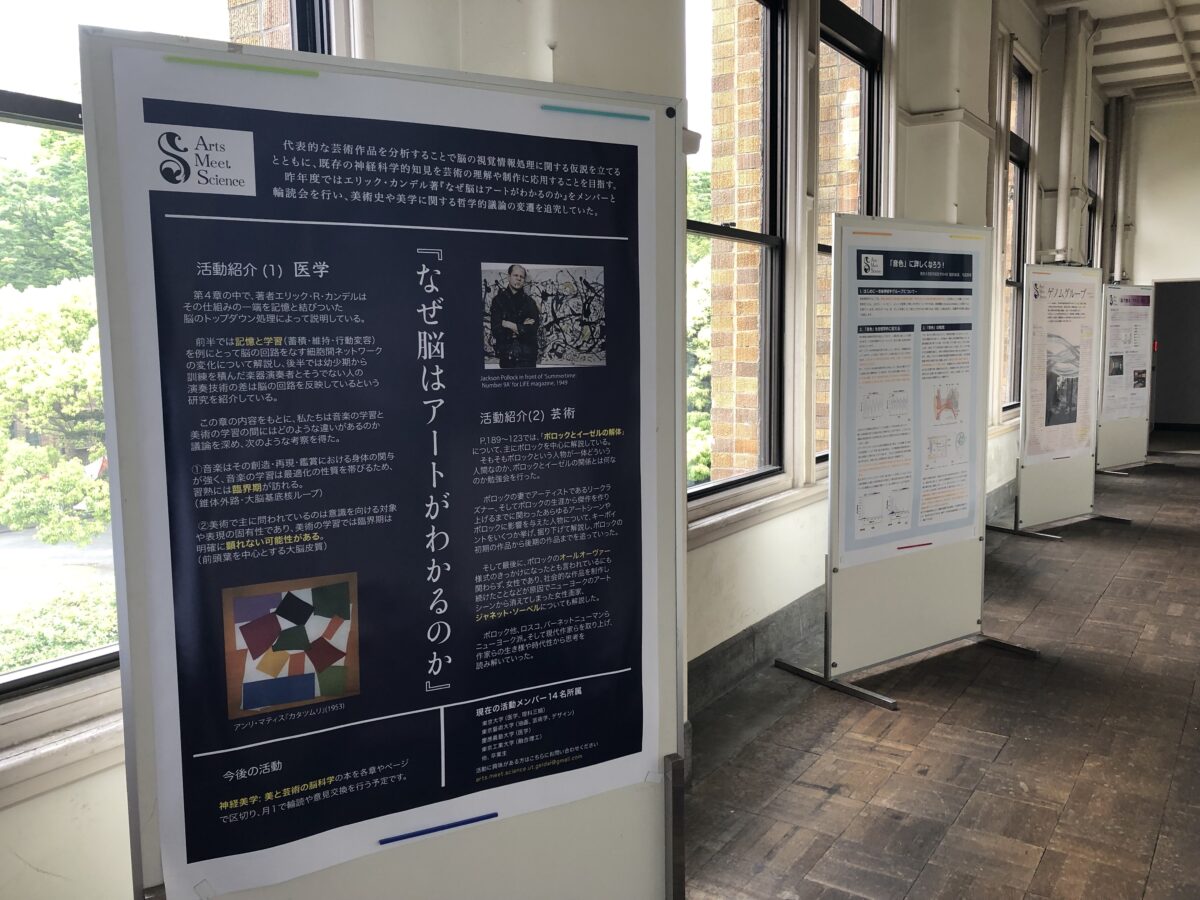 芸術と科学という2つの領域は切り離されているのではなく、深いところで重なり合い、私たちの生活を鮮やかに魅せている。AMSSの活動では、片方の分野を専門とする学生がもう一方に強く関心を持ち、学術的に交わることで、予想し得なかったシナジーが生み出されているのだ。AMSS代表の服部さんは、4枚のポスターを背に語る。