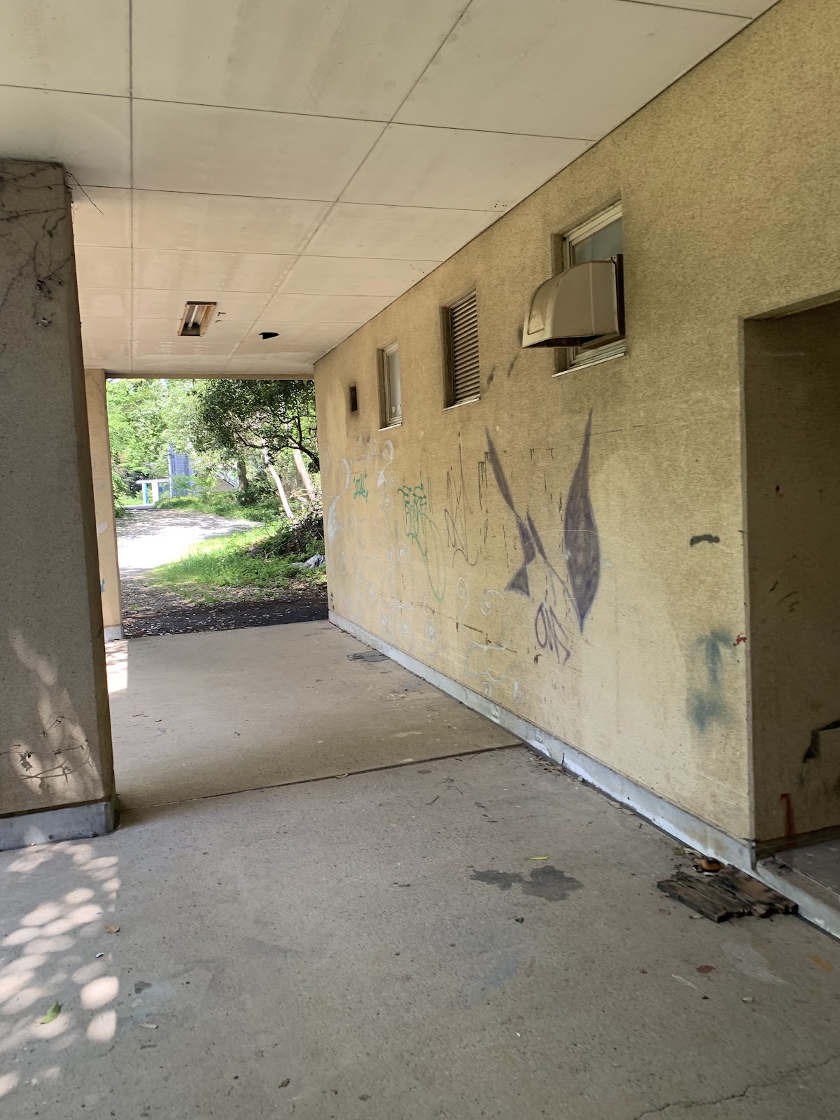 うーん…週3回通い詰めている身からすると、隠れ家的な?いやそれは言い過ぎかな、穴場?……あ、廃墟!ちょっと秘密基地感もあるけど、汚いってことで廃墟。