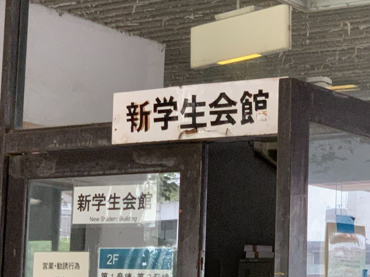若干風化したような看板が掲げられていた。とりあえず、学生会館であるらしい。ここでいう学生会館というのは学生が住むマンション的なやつではなく、サークルなどの活動場所になる部室や共用スペース等がある建物をさしている。