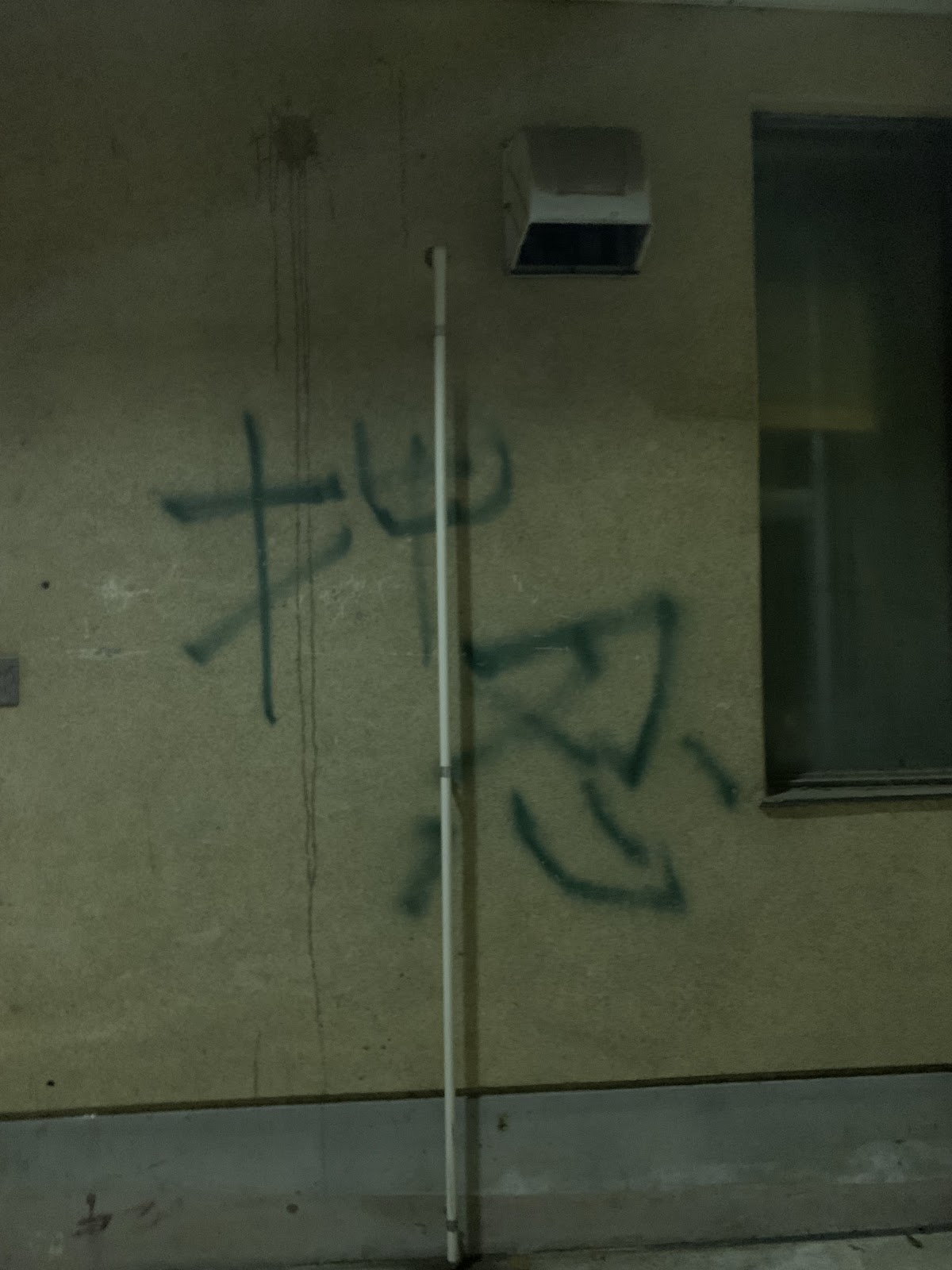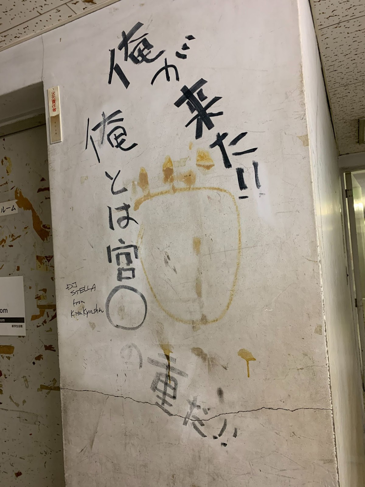 駒場キャンパスにこのように退廃的な雰囲気の建物があるとは思いもしなかった。そもそも東大には私をのぞけばマジメで勤勉な学生が集まっており、こういう路地裏感のあるスプレー落書きとは無縁の大学だと思っていたのだが。私はスキップしたひょうしに変な別世界に迷い込んでしまったのだろうか?