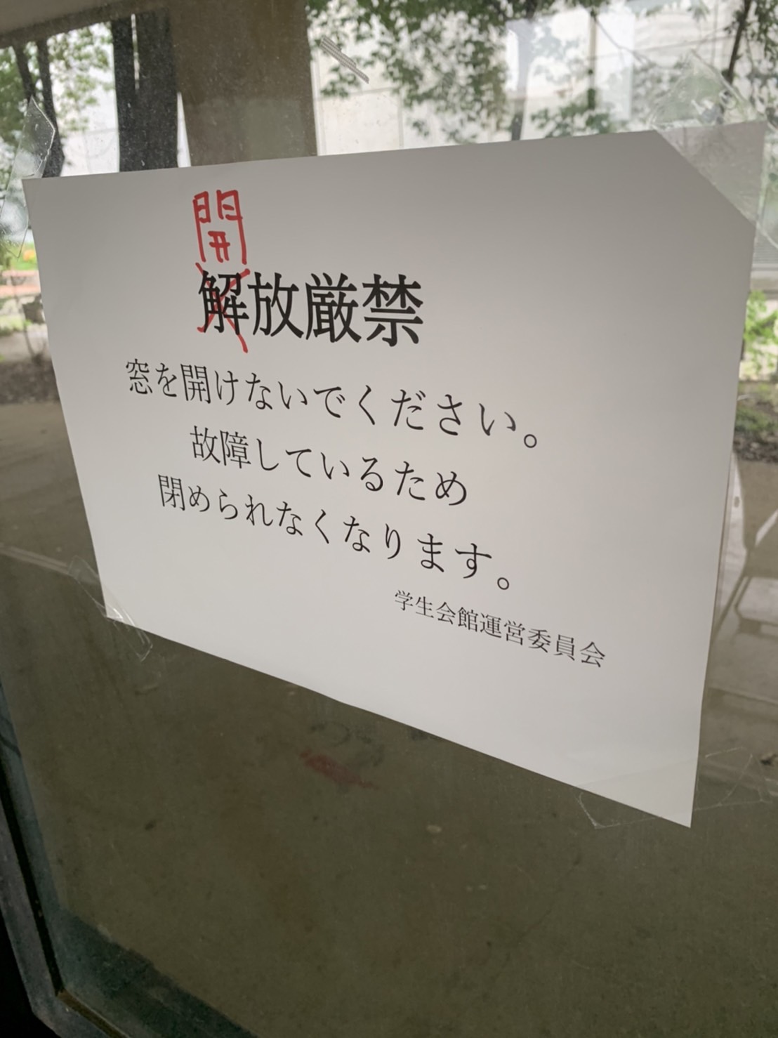 A.現状新館と学生会館を学生会館で一括管理しているので、新館が「離れ」扱いされ掃除・整備が若干雑になりがちなのもありそう。