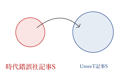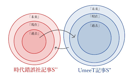 このように「未来に存在しうる記事Mの可能性」を包括するように記事S’を拡張する(このような記事Sを記事S’’とする)。この時、「U専時専U記事」に対応する元は「今回の企画(=時錯・UmeeTコラボ)に対応する記事M」、つまり「再度のコラボレーション記事」の存在を示唆するものである。