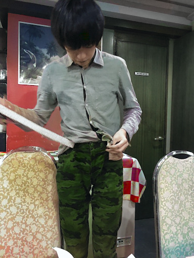彼が向かった先はムスカン。お口直しのためであるはずなのにムスカンセットを注文。食べ始めてから10分後、彼は悶絶していた。「いや、俺は必殺技を準備している。今それを見せてやる。」と言うと、立ち上がって、ベルトに手を伸ばす。