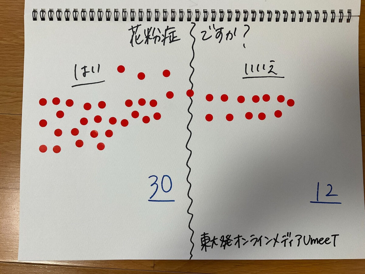 環境省が出している「花粉症環境保健マニュアル」によれば、2019年調査での15〜29歳の花粉症の有病率は61.6%だそうなので、比較的近い数値が出たようです。