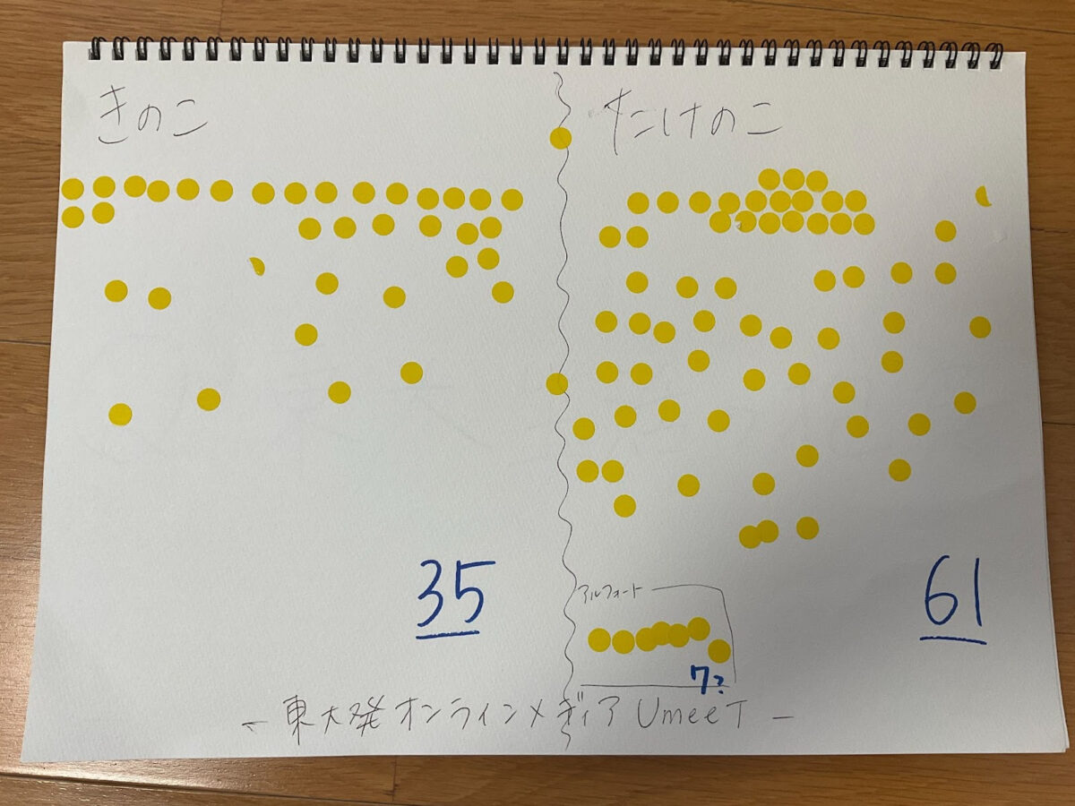 なんと、フォームでのアンケートとほぼ同じ結果に!やはり圧倒的にたけのこ派が多いようです。