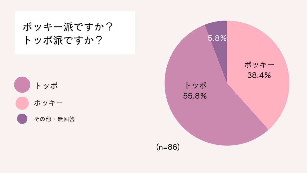 トッポ派がポッキー派を大きく上回る結果となりました。圧倒的ポッキー派の筆者、悲しい…