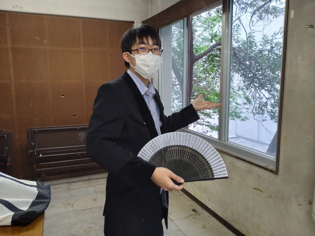 部屋の中には、扇子からカードまで様々な道具を使ってマジックをしている学生達がいました。