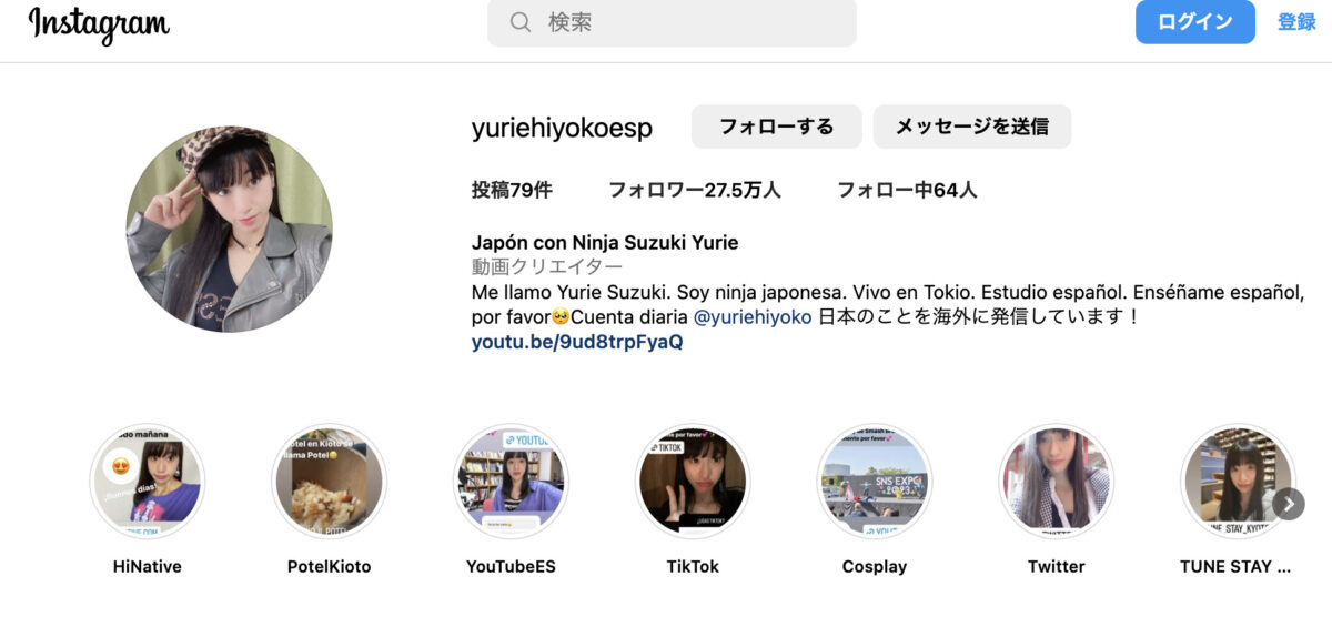 そう、私はSNSでのアプローチがメインです。私のインスタのアカウントが2つあって、1つは日本語でも投稿したりしている方で、もう1つがスペイン語で運用してるアカウントです!このスペイン語の方の伸びがすごくて…なんか私のスペイン語の喋り方とか声が面白くてウケてるっぽいです。昨日がフォロワー21万人ちょいだったのに、今見たら22万人ぐらいになってて…なかなか急成長してるんです。(※編集中に27万人を突破されたそうです!すごすぎます!)