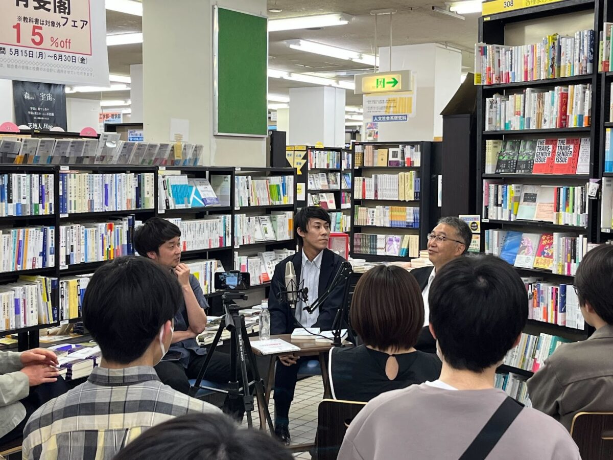 今回の書籍の著者・久保さんに加え、航空宇宙工学専攻の中須賀真一先生をお呼びして、店内のスペースでトークショーを行いました。