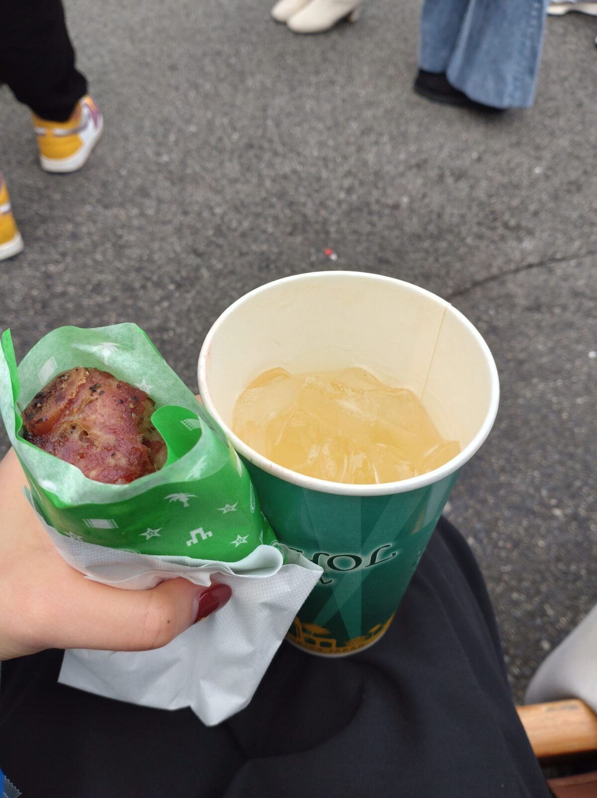 まだ明るいうちからフードカートで買ったお酒を片手に、そのまた近くのフードカートで買ったポークリブに食らいつく。これこそ、人類が手にした最上級の幸せです。