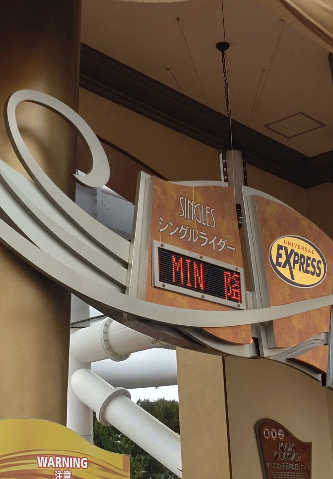 これは、基本ユニバのアトラクションは偶数人乗りが多いのですが、3名や5名などのいわゆる奇数人の人達が乗り物に乗ることとなった時に、一人でアトラクションに乗りに来た人が欠員補充として優先的に乗ることができる、という制度なんです(正しく説明出来ている自信はないです、有識者求む)。