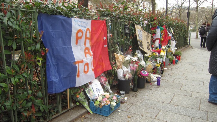 襲撃された劇場とレストランを回って、銃弾の痕が刻まれたガラスや犠牲者を悼む数多くの献花や旗を目にした。事件現場は、車通りの多い道路沿いの至って普通の街角、あるいは子供の姿も目にしそうなマンションが立ち並ぶ住宅街の一角で、私が訪れたときには平然とパリの街並みに埋もれているだけだった。