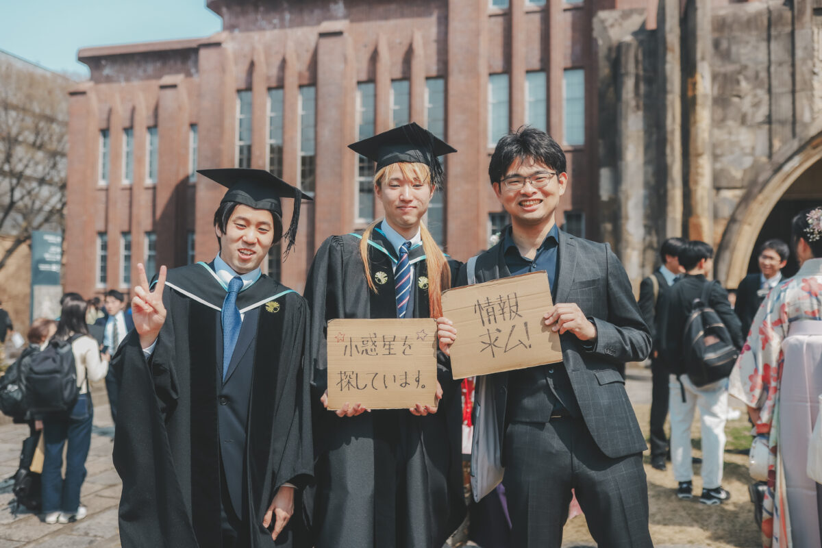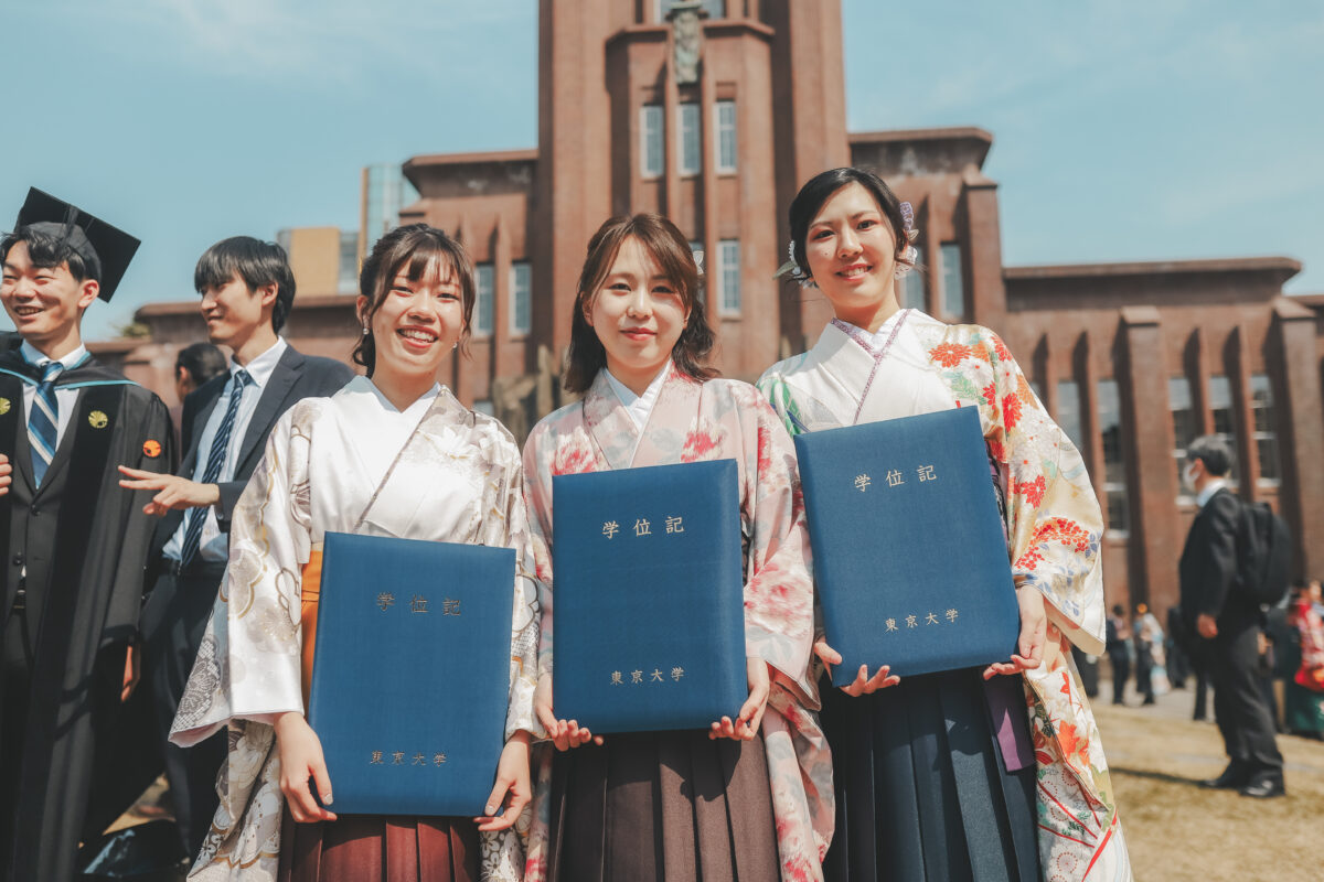 約3000人の学生が学部を卒業し、本郷キャンパスには晴れやかな笑顔が溢れていました。