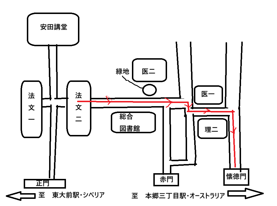 ここで懐徳門という小さな門から出て、本郷キャンパスをあとにする。かなり目立たない場所にあるため、地図がないとたどり着けないかもしれない。