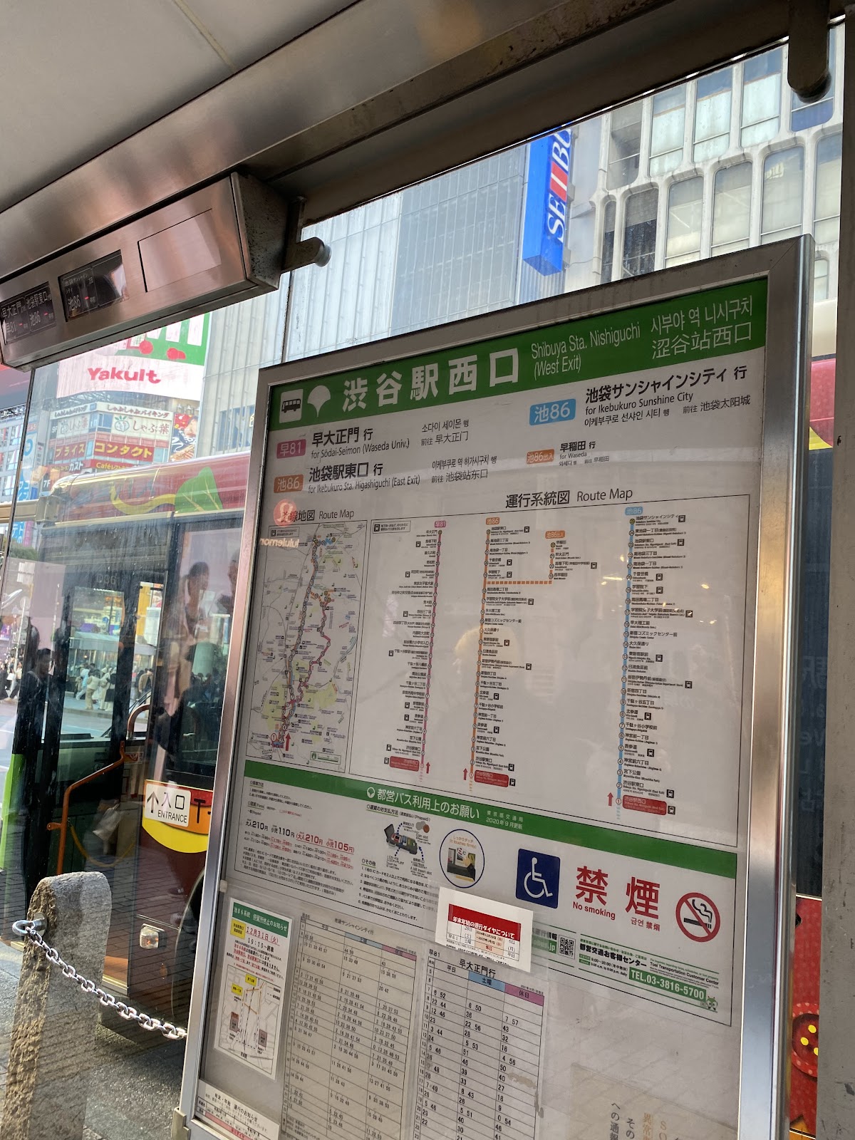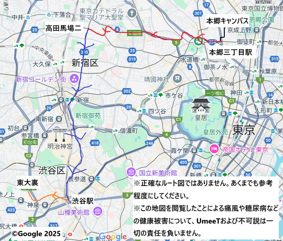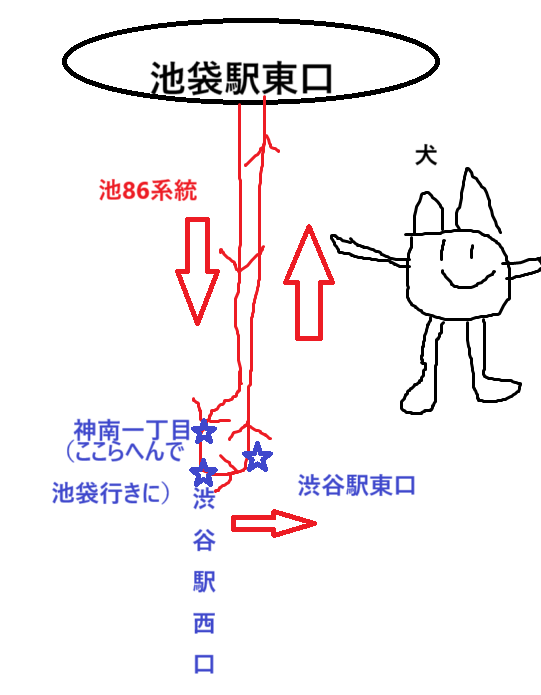 今回のルート:本郷キャンパス~(徒歩)~本郷三丁目駅前~(上69)~高田馬場二丁目~(池86)~渋谷駅西口~(ハチ公バス丘を越えてルート)~東大裏