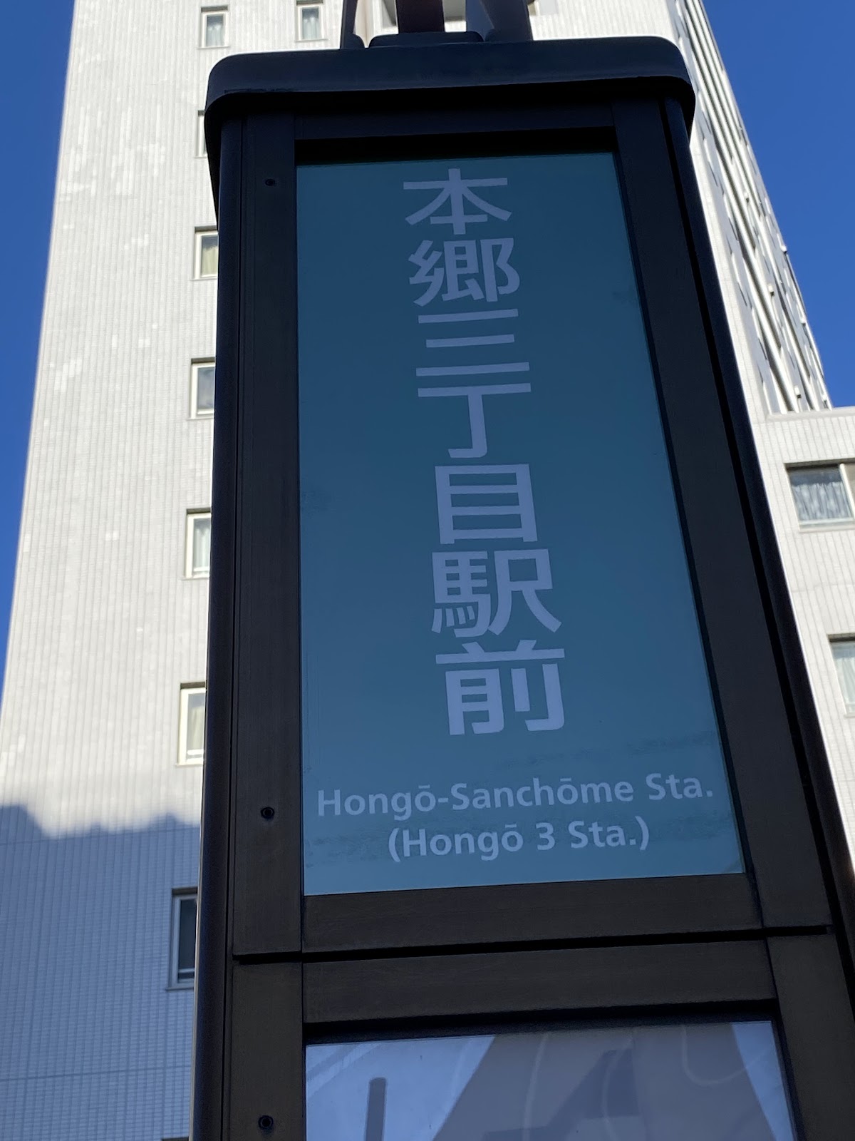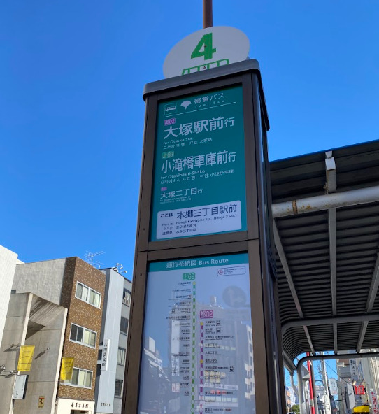 左(南)の方に出て、停留所を目指す。本郷三丁目駅前のバスのりばは複数あるが、今回は大江戸線本郷三丁目駅5番出口の隣の4番乗り場。横断歩道を1つ渡った先にある。