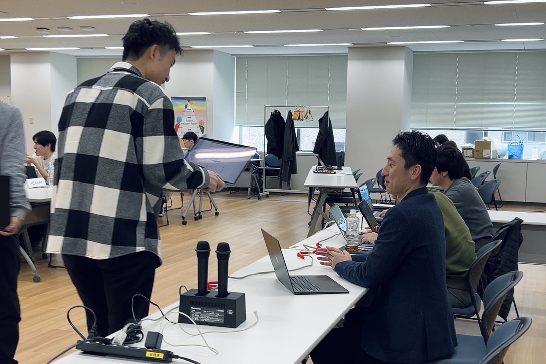 12時になり、開始から一時間が経ったところで、スタッフの方がテーブルを巡回。現在の進捗を確認しつつ、適宜アドバイスをしていきます。