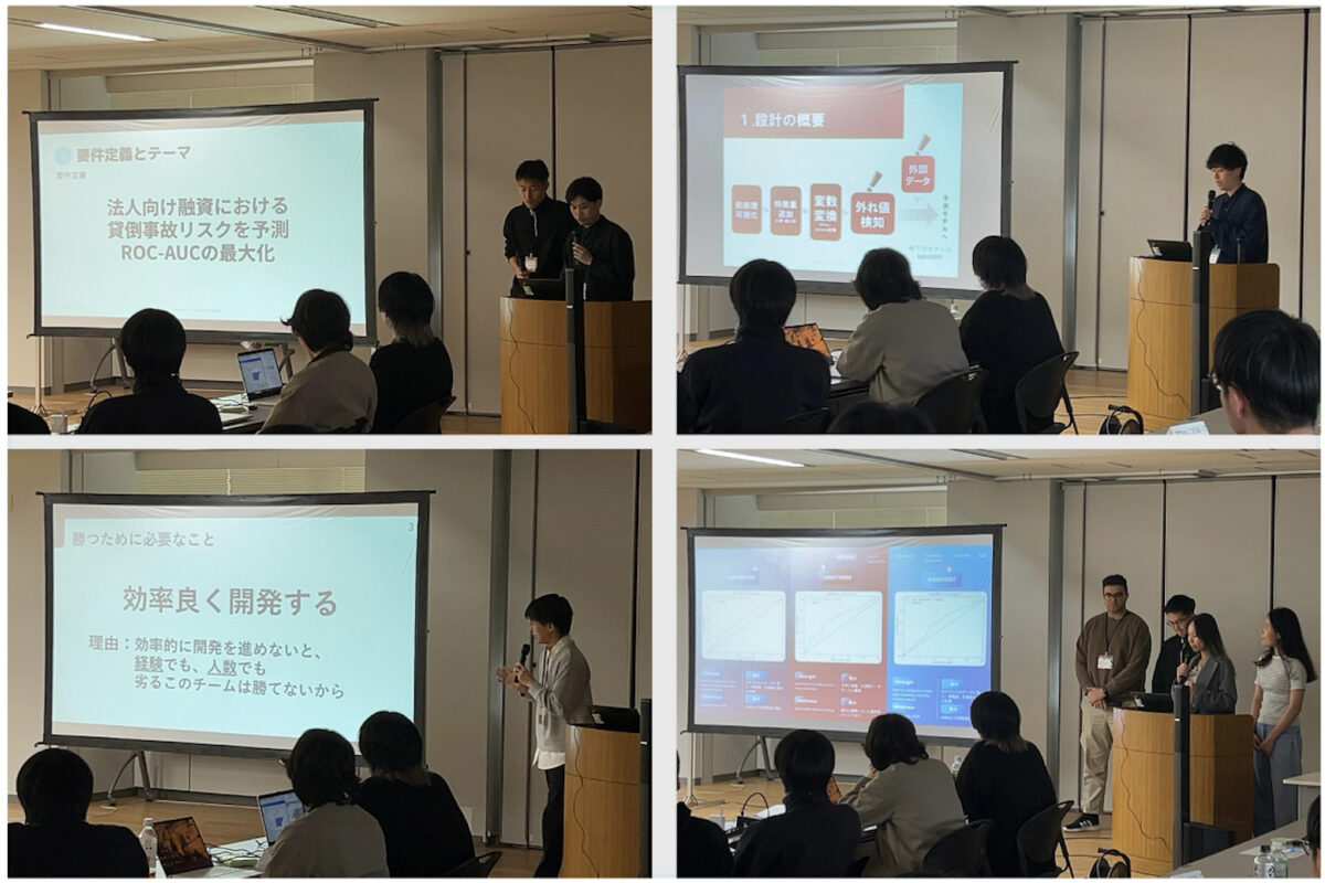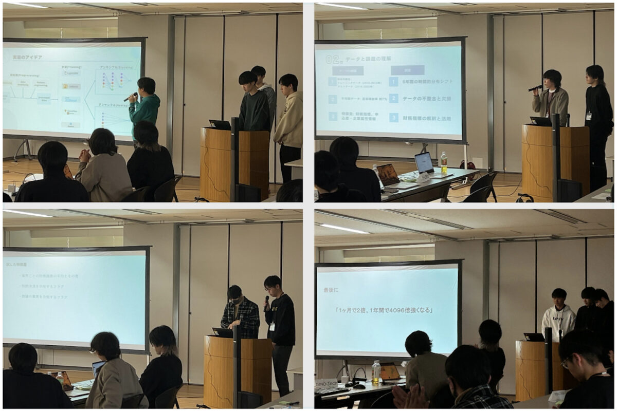 それぞれのチームが自分たちの考え・とった戦略を発表していきます。工夫したポイント、行き詰まった箇所、独自のアプローチなど、2日間の努力の成果が滲み出ていて、どのチームの発表内容も聞き応えがありました。