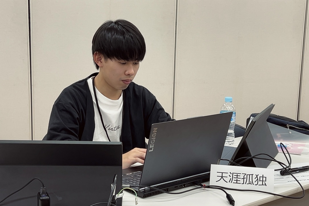 『天涯孤独』というチーム名をつけ、「猫の手も借りたいです」と言いながら1人黙々と作業を進める彼は、なんとプログラミング歴も半年ということで…!一体どんな戦い方をするのでしょうか?