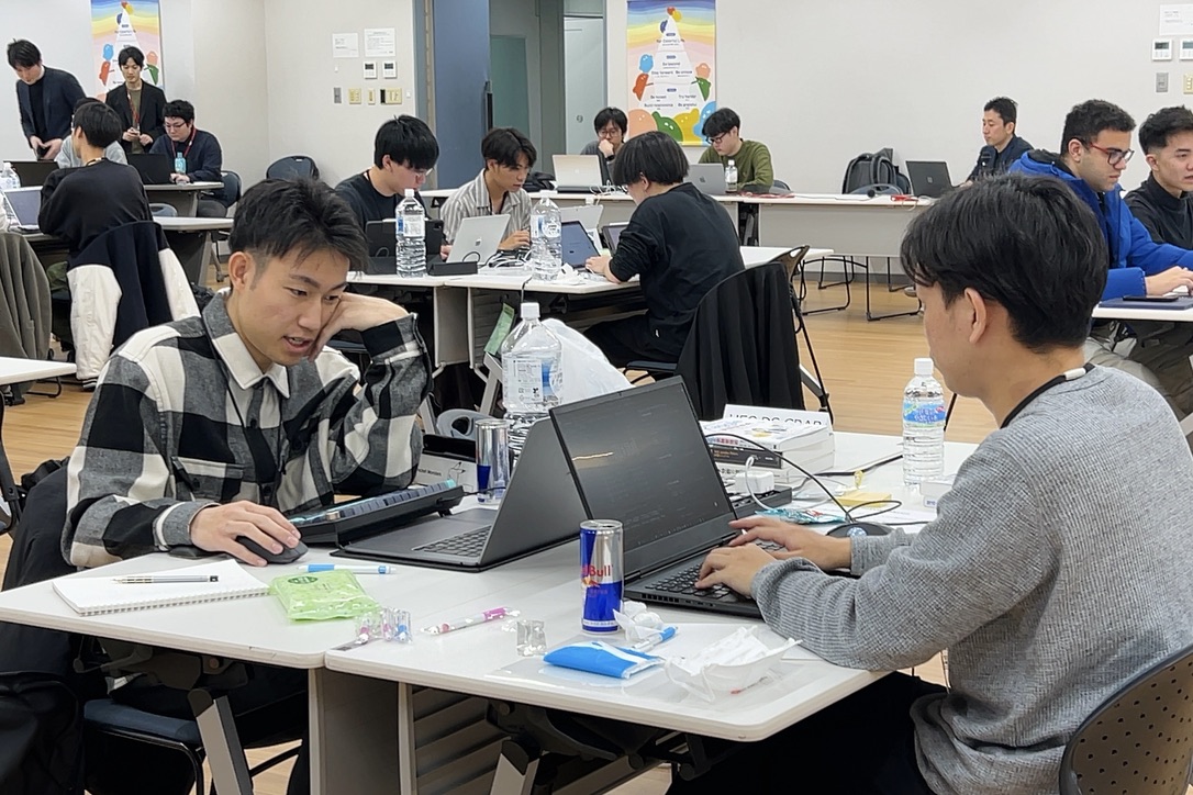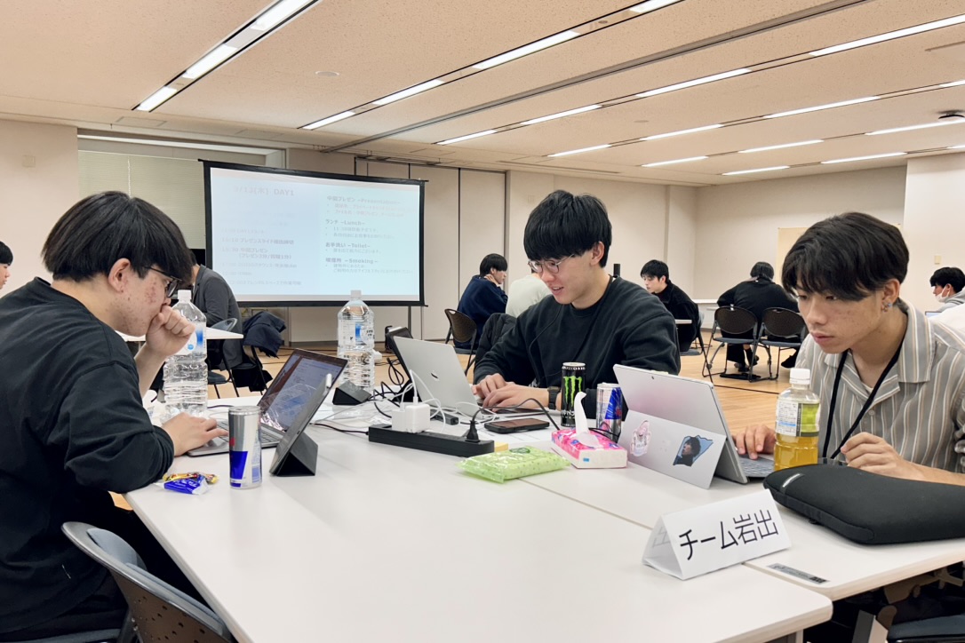 中間プレゼン後はすぐ、作業に戻ります。どのチームもすごく集中しています。