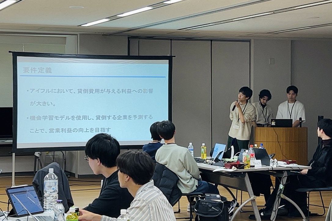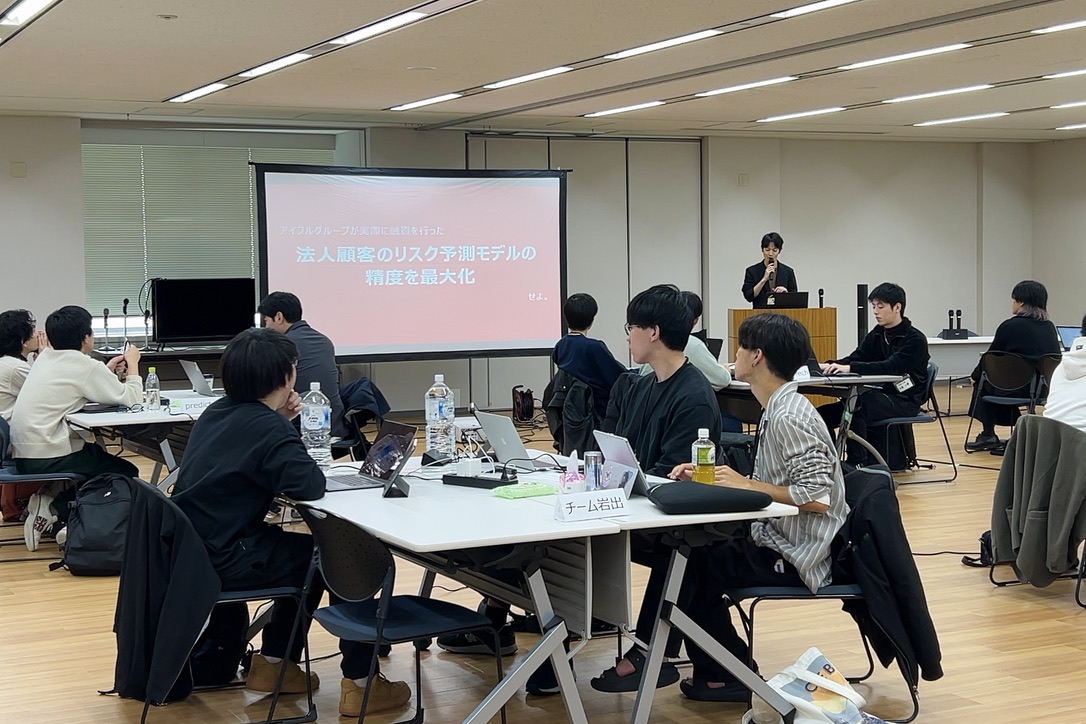 参加者たちは、アイフルグループが保持する実際の顧客データ(※匿名化されたもの)を用いて分析し、データのどこに注目して、どんな予測モデルを使えばいいのかを試行錯誤していきます。言うなれば、答えのない問いに挑戦するわけです。これは燃えますね……!