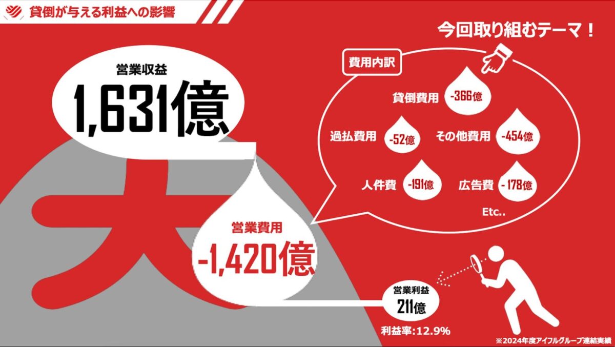 お金を貸すという事業には、貸したお金が返済されないというリスク「貸倒(かしだおれ)リスク」が常に伴うため、貸倒リスクの予測は、アイフル社の損失を減らすため非常に重要な課題なのです。