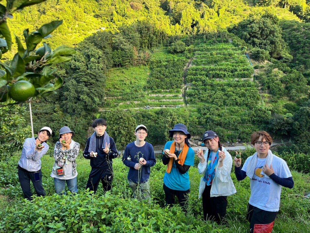 長期休みなどに希望者で全国のみかんの産地にお邪魔して、収穫や摘果(間引き)といった農作業を体験します。