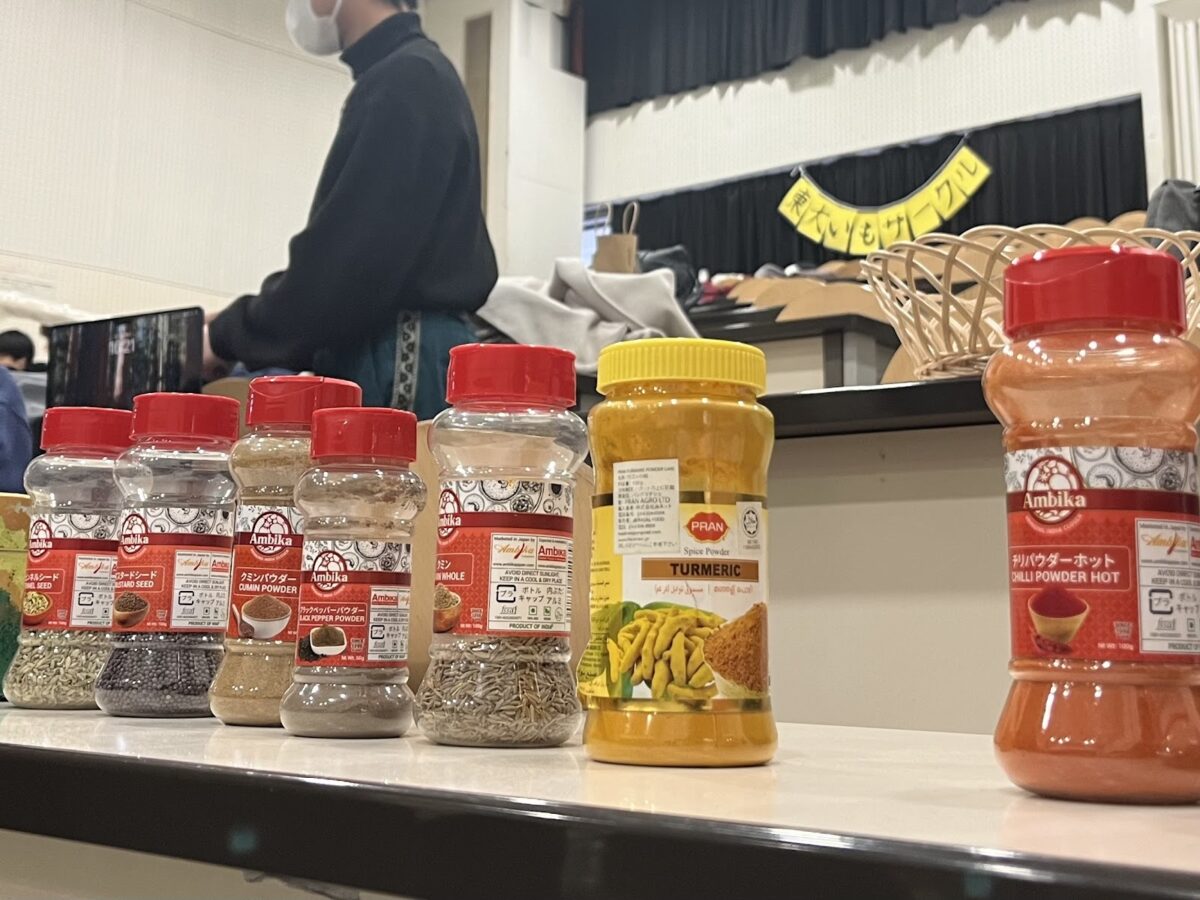 続いてスパイス部さん。教室の入り口付近で大量のスパイスを陳列しており、香ばしい香りが鼻をくすぐります。