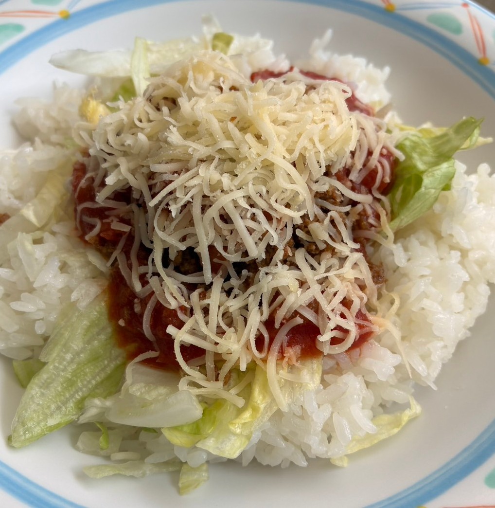 こちらも九州沖縄フェア限定メニューのタコライス。可愛いお皿の上に白飯、挽き肉、チーズ、レタス、トマトが乗っています。やや具は少ない印象でしたが、具材どうしの相性もよく、美味しかったです!