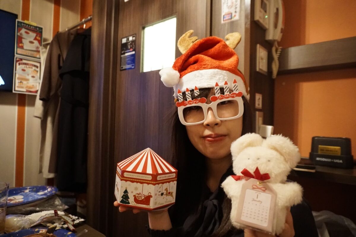 クリスマスソングメドレーと同時進行で製作を進める。ちゃっかりサンタ・トナカイの仮装もしております。店員さんがドリンク持ってきてくれるときめっちゃ恥ずかしかった。