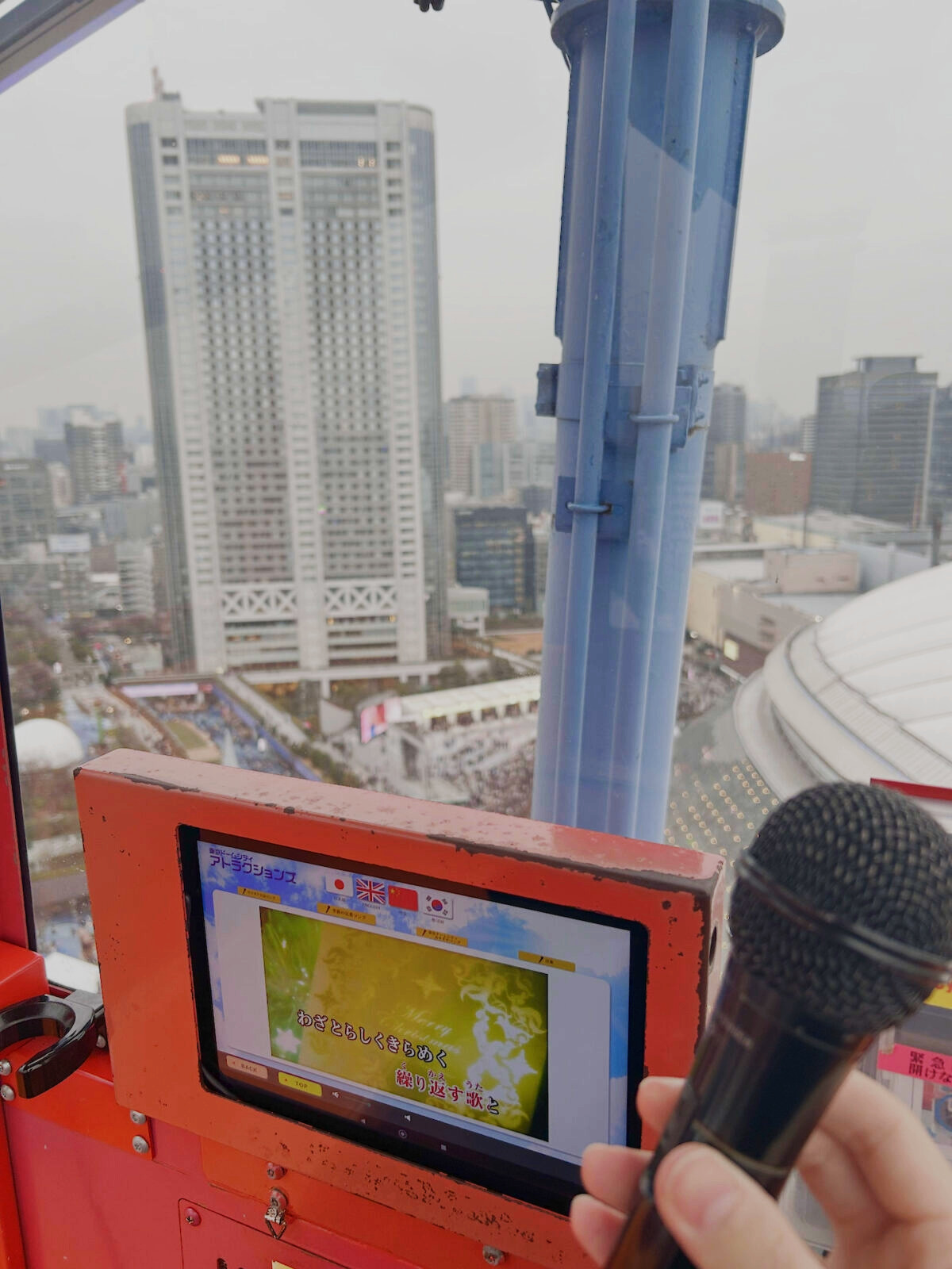 この観覧車にはなんとカラオケがついているんです。