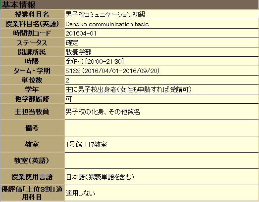 「男子校コミュニケーション初級」、大人気の授業になること間違いなしです!
