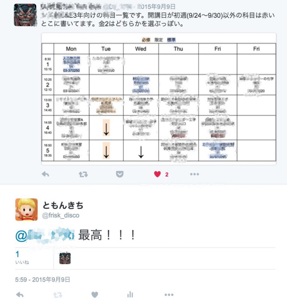 情弱と情強の見分け方として、「ご参考までに」と言って時間割アプリをスクショしてTLに上げる人は情強、それに「神!」「ありがとう!」などとリプを飛ばす人が情弱です。