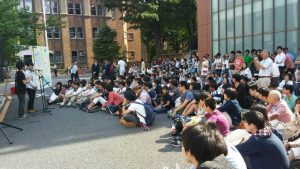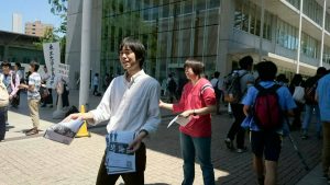 昼休みになって、今日もやるかと駒場の生協食堂前へ。やっぱり騒がしいなあいつら。